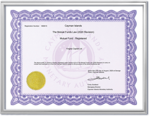 Yingkai Capital Ltd is a registered mutual fund under The Mutual Funds Law (2020 Revision) in the Cayman Islands (Registration No: 1808015). Committed to transparency and compliance, we provide innovative investment solutions, robust risk management, and long-term value for our investors. Backed by regulatory oversight, we ensure a secure and efficient investment environment.
